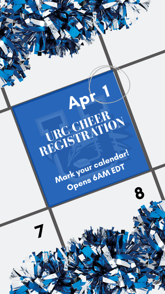 Cheer registration for the Fall 2026 season opening April 1, 2026.